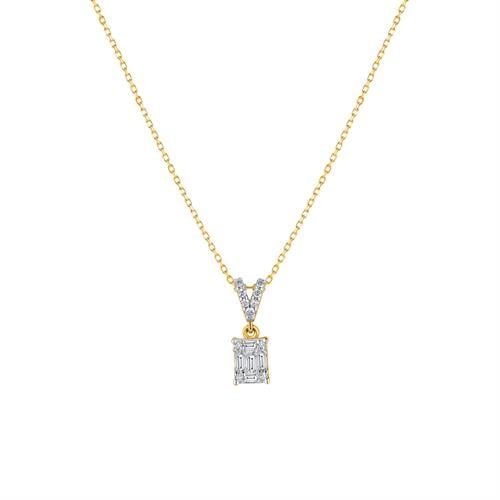 Sarı Altın 14 Ayar Baget Pırlanta Kolye