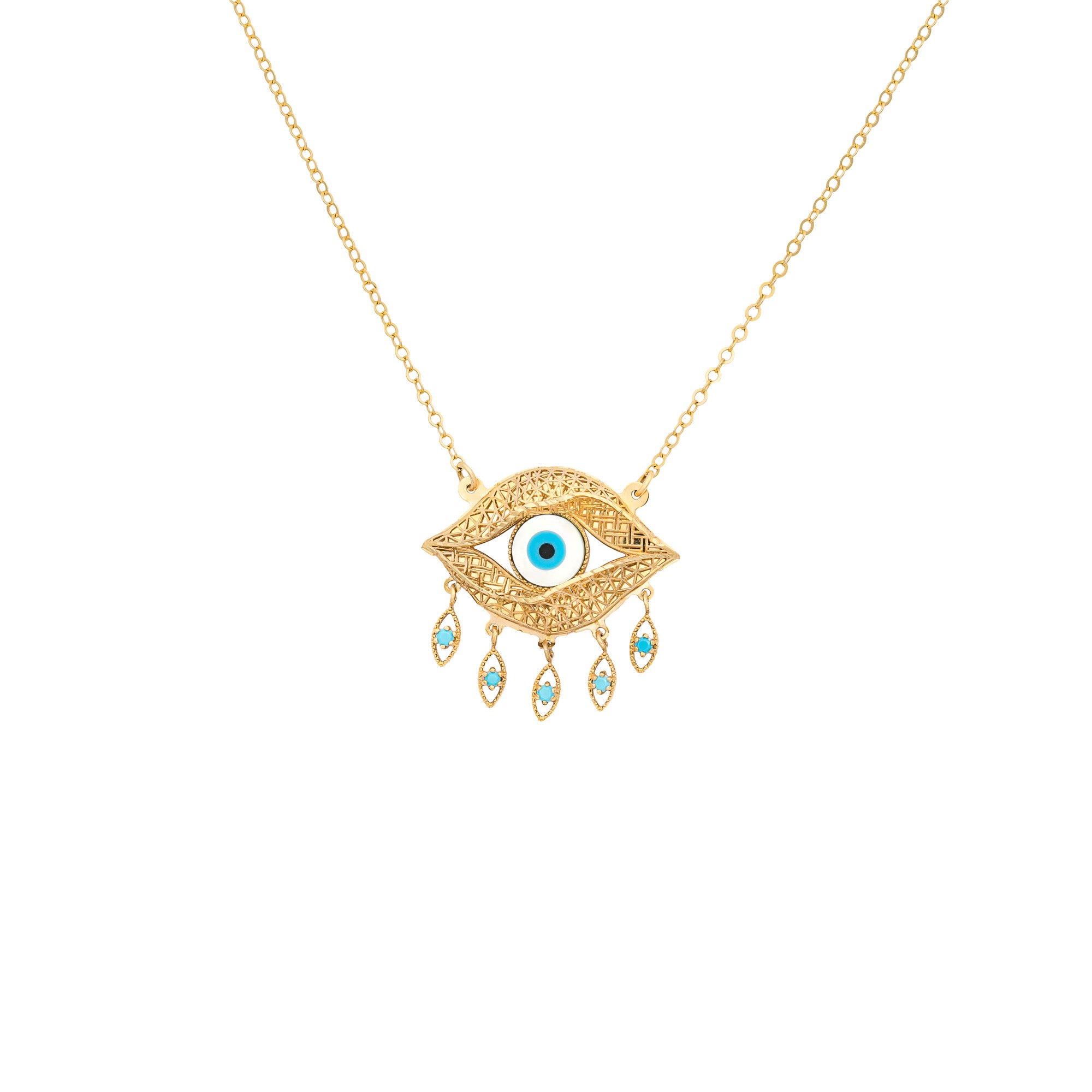 Sarı Altın 14 Ayar Göz Kolye TAC Diamond kalitesiyle sizlerle. Ürünlerimizin tamamı el işçiliği ile üretilmektedir. Fiyat 1 adet ürün için geçerlidir. Siparişleriniz aynı gün kargoya verilmektedir, stoklarımızda hazır olmayan özel tasarım ürünler ise en geç 10 iş günü içerisinde üretimi yapılıp kargoya verilecektir. Hızlı ve güvenli teslimat ile hemen kapınızda. ...