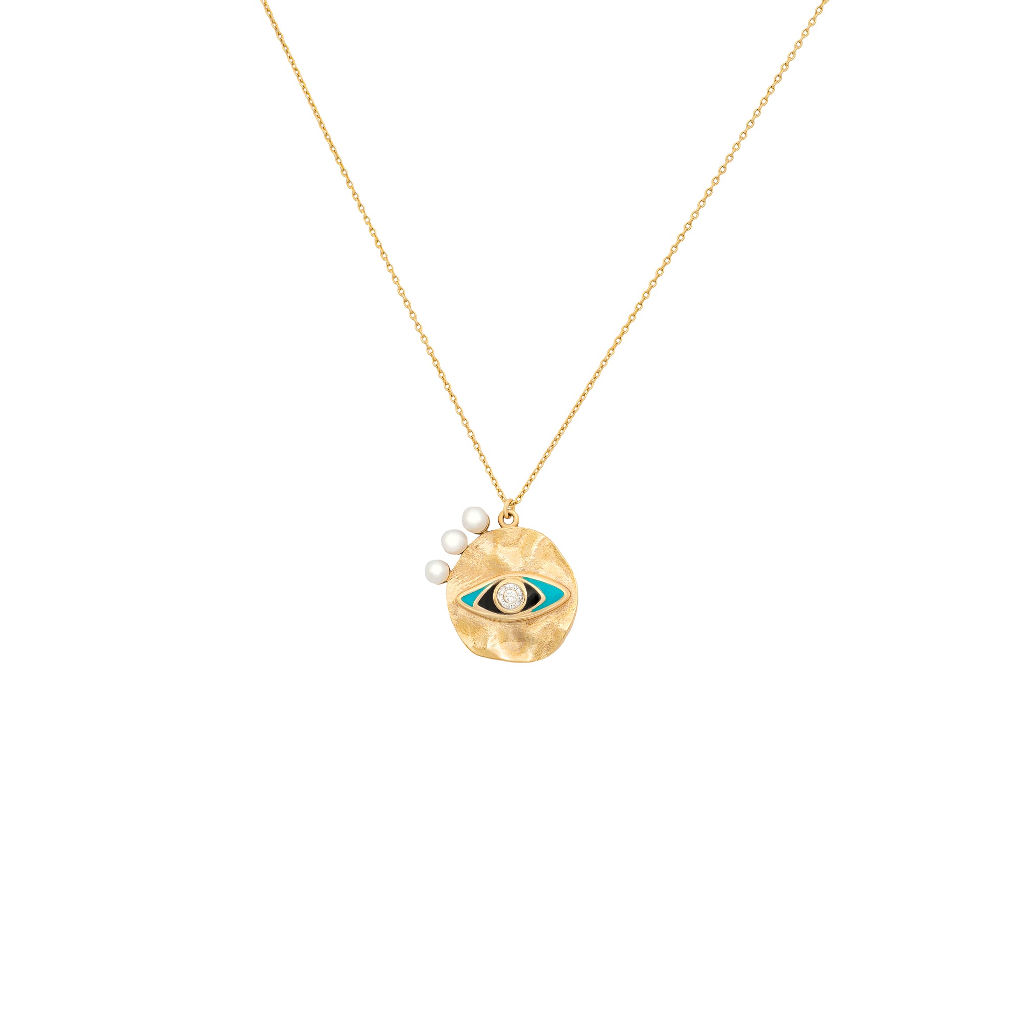 Sarı Altın 14 Ayar İnci Nazar Kolye TAC Diamond kalitesiyle sizlerle. Ürünlerimizin tamamı el işçiliği ile üretilmektedir. Fiyat 1 adet ürün için geçerlidir. Siparişleriniz aynı gün kargoya verilmektedir, stoklarımızda hazır olmayan özel tasarım ürünler ise en geç 10 iş günü içerisinde üretimi yapılıp kargoya verilecektir. Hızlı ve güvenli teslimat ile hemen kapını...