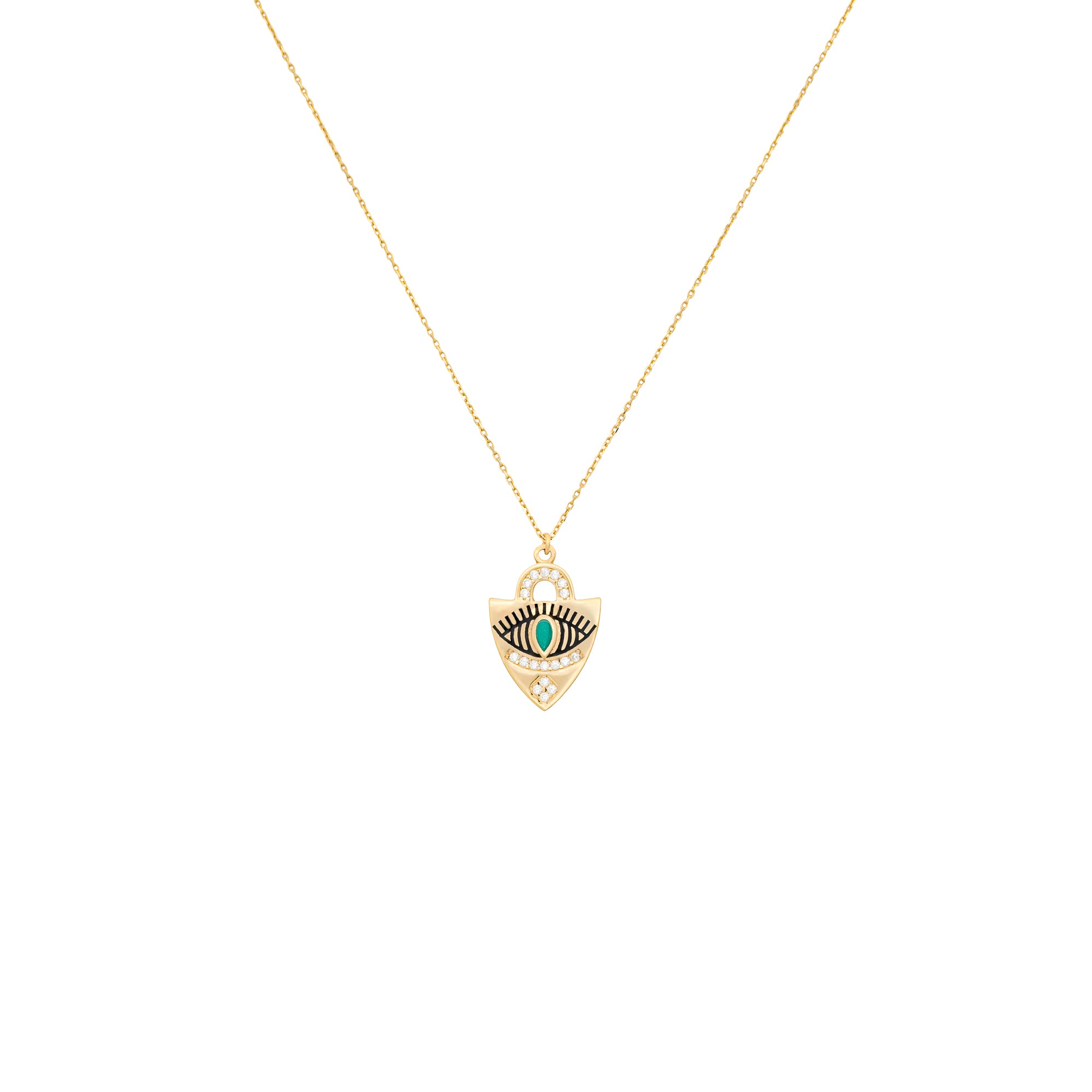 Sarı Altın 14 Ayar Kalkan Göz Kolye TAC Diamond kalitesiyle sizlerle. Ürünlerimizin tamamı el işçiliği ile üretilmektedir. Fiyat 1 adet ürün için geçerlidir. Siparişleriniz aynı gün kargoya verilmektedir, stoklarımızda hazır olmayan özel tasarım ürünler ise en geç 10 iş günü içerisinde üretimi yapılıp kargoya verilecektir. Hızlı ve güvenli teslimat ile hemen kapını...